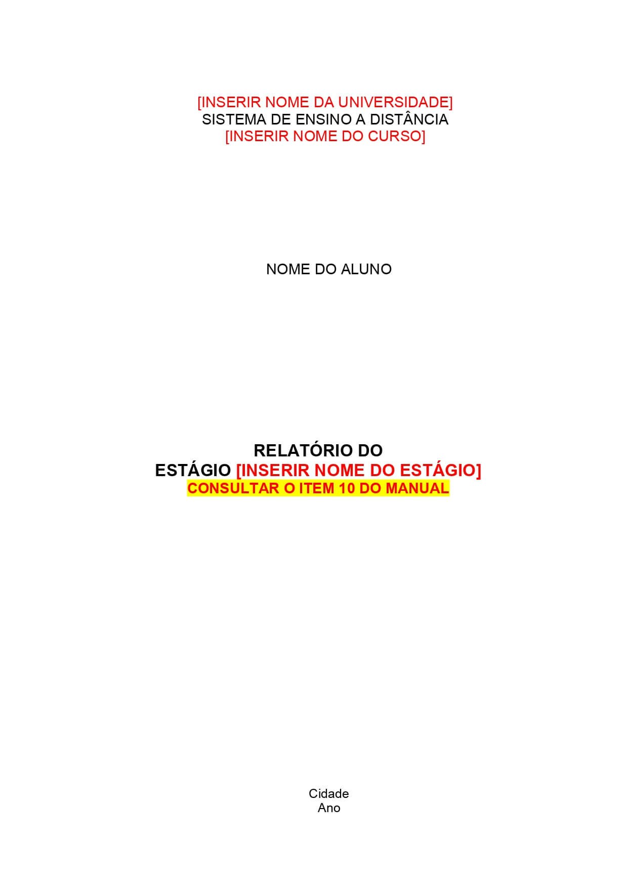 no decorrer de todas as etapas do estágio. Para a apresentação do texto, seguir a