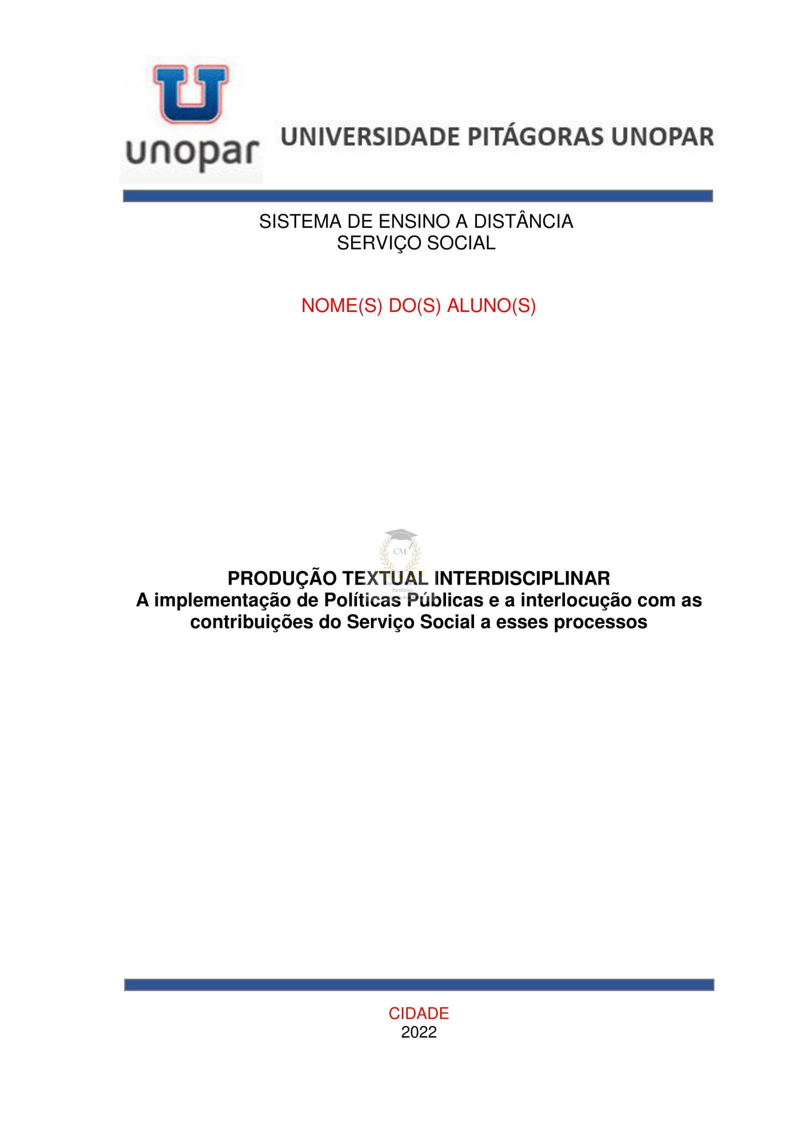Portfólio A implementação de Políticas Públicas e a interlocução com as contribuições do Serviço Social a esses processos