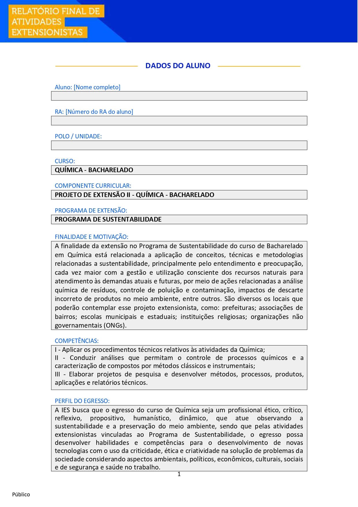 Projeto de extensão II Química – Bacharelado
